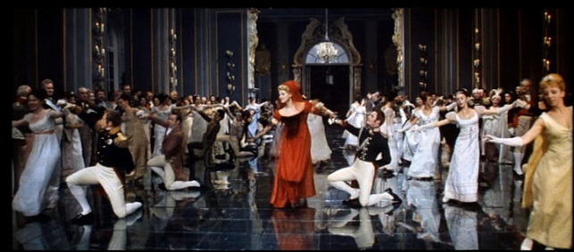 Het tsarenbal in Vilnius, op de dag van Napoleons invasie De verfilming is gebaseerd op een Russische klassieker van de wereldliteratuur door Lev Nikolajevitsj Tolstoj (1828 - 1910), telg van een rijke en oude familie grondbezitters. Als onderofficier in de artillerie maakte hij de Kaukasusoorlogen (verovering van Tsjetsjenië) mee en de bloedige Krimoorlog (1855). Hij verwierf beroemdheid door zijn realistische beschrijvingen, die niets meer met heldenverering te maken hebben, maar de verschrikkingen van de oorlog voor de eerste maal beeldend en literair evoceerden. Oorlog en Vrede (Vojna i mir) - geschreven van 1865 tot 1869, in de weinige gelukkige jaren van zijn huwelijk en teven zijn vruchtbaarste periode- is een van zijn meesterwerken en wellicht zijn meest bekende. Het bevat een breed geschilderd panorama van de Napoleontische inval in Rusland in 1812. Behalve gedetailleerde (en blijkbaar zorgvuldig gedocumenteerde) beschrijvingen van militaire operaties geeft hij tevens een schildering van diverse sociale milieus, verweven met theoretisch- historische of filosofische beschouwingen, om tot een doordringende morele analyse te komen van de beschreven tijd en de mensheid en menselijke geschiedenis in het algemeen. Het boek is zo bekend dat het een eigen, uitvoerig lemma krijgt in een algemene encyclopedie. Het werd als onverfilmbaar beschouwd omwille van zijn omvang en complexiteit. Of dat hier gelukt is, laten we aan uw oordeel over. Zeker is dat Margareth Mitchell hier inspiratie vond voor haar Gone with the wind (Gejaagd door de wind), dat zich afspeelt voor en tijdens de Amerikaanse burgeroorlog (1861-1868) en op zijn beurt inspiratie opleverde voor een erg beroemde film en enkele goede en zeer populaire televisiereeksen als North and South. War and Peace is tevens het meesterwerk van de Russische filmmaker Sergei Bondarchuk. De hele film duurt net geen zeven uur, het dubbele van King Vidors Amerikaanse verfilming uit 1956.
