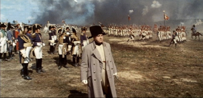 Napoleon en zijn generale staf tijdens de slag bij Borodino Gelukkig paste de Russische overheid met plezier het verschil bij. De gezagsdragers in Moskou grepen toen nog elke gelegenheid aan om de Verenigde Staten een hak te zetten en het communisme te verheerlijken. (We zaten immers midden in de Koude Oorlog tussen de USSR en VS met hun respectievelijke bondgenoten.) Voor de Amerikaanse markt werd War and Peace flink ingekort en in de zalen gebracht in twee delen. Het gemutileerde werkstuk won desondanks toch de Oscar voor beste buitenlandse film. De rest van de wereld kreeg gelukkig de integrale film te zien, opgesplitst in vier delen, zoals nu ook de dvd. Andrej Bolkonski, het eerste deel, vangt al meteen aan met het nieuws dat Napoleon oprukt naar Moskou. Het aristocratische titelpersonage grijpt naar de wapens en trekt naar het front. De aflevering eindigt met een van de twee groots opgezette gevechtsscènes uit de film. In Natasja Rostova, het tweede deel, ligt de nadruk veelal op de menselijke (lees: vrouwelijke) kant van de oorlogsperiode. Het glansnummer is zonder twijfel de indrukwekkende balscène, die Bondarchuk met evenveel overtuiging in beeld brengt als de oorlogstaferelen. De twee laatste delen, 1812 en Pierre Bezoekhov, handelen over de beslissende veldslag en de nederlaag van Napoleon. De voorbereidingen verlopen in totale chaos, maar de filmmaker houdt het geheel knap overeind door de karaktertekeningen en de emotionele slagkracht van het verhaal niet te verwaarlozen. War and Peace is niet subliem van begin tot einde, al stelt Bondarchuk alles in het werk om het tempo niet te laten zakken. De weergaloze fotografie en de ingenieuze mise-en-scène zorgen ervoor dat zelfs de intieme dialoogscènes nauwelijks afsteken tegen de grandeur van de immense veldslagen, waar meer dan honderdduizend soldaten bij betrokken waren. De camera staat nooit stil, vliegt soms over de hoofden van de protagonisten en legt een breed spectrum van kleurschakeringen vast op film; nu eens oeverloos gestileerd dan weer uitermate realistisch. Narratief zit de monsterproductie even complex en ambitieus in elkaar als cinematografisch. Bondarchuk bleef dan ook opvallend trouw aan de roman die Tolstoj over een uitzonderlijk woelige periode uit de Russische geschiedenis schreef. De filmmaker, die zelf in de huid kruipt van de mannelijke protagonist, neemt rustig de tijd om alle personages te introduceren en naar behoren uit te werken. Hij slaagt er bovendien vele details uit de roman van Tolstoj op een of andere manier in het verhaal te verwerken, zonder echt te tekenen voor een slaafse en dus saaie verfilming. Opvallend is dat hij veel minder de gebeurtenissen aan de Franse kant toont dan in BBC - televisiereeks uit 1972 met Antony Hopkins in de rol van Pierre. Napoleon komt heel wat korter in beeld, en de bijbehorende beschouwingen van Tolstoj zijn erg gereduceerd of volledig weggelaten. Wel kan ik appreciëren dat de vertolkers hun eigen taal spreken. Zelfs als je de Engelse versie selecteert, wordt er nog behoorlijk veel Russisch gesproken. Fransen -en veel Russen uit de hogere kringen- spreken Frans, Duitsers en Oostenrijkers Duits. Op de dvd’s is de kwaliteit van het beeld behoorlijk, maar het restauratiewerk is allesbehalve afgerond. Aan het kleurenpalet kan nog flink worden geschaafd en het beeld is (letterlijk) zeker niet vlekkeloos. Een angstige gedachte dat een film op slechts enkele tientallen jaren zo kan aftakelen! Dat betekent helaas niet dat er de komende jaren nog een betere kopie op de markt komt, tenzij een wel zeer gulle weldoener een klein fortuin op tafel legt om de film in oorspronkelijke en dus onberispelijke staat te herstellen. Wat ook na meer dan veertig jaar overeind blijft, zijn de veldslagen. Austerlitz, de Borodino, de brand van Moskou … zijn terecht beland bij de klassiekers uit de filmgeschiedenis. Je merkt natuurlijk hoezeer deze sequenties model hebben gestaan voor latere verfilmingen als Waterloo (1970) en de recente televisiereeks Napoleon Bonaparte (2002). Op deze speciale editie worden de vier delen verspreid over vier schijfjes. Aan de set is nog een vijfde dvd toegevoegd met een schat aan bonusmateriaal, waaronder een documentaire over de filmmaker en verschillende documentaires over de auteur Lev Tolstoj. De ‘Extra’s’ zijn voor de rest verspreid over de vijf dvd’s De ‘Extra’s’ zijn enkele decennia oud en ruiken bijgevolg sterk naar propaganda. Je zit ongelovig te kijken en te luisteren naar het communistische jargon van nog maar zo kort geleden dat wel van een andere planeet lijkt te komen. In geringe mate tonen ze ook aan dat Bondarchuk beïnvloed werd door de Amerikaanse verfilming van King Vidor met Audrey Hepburn en Henry Fonda. De Russische filmmaker kreeg dan wel meer tijd en middelen om het lijvige boek te verfilmen, zijn film vertoont treffende gelijkenissen met de tien jaar oudere versie van Vidor. Zijn vrouwelijke hoofdrol, Ludmila Saveljeva, lijkt uiterlijk op Hepburn en zijn eigen rol als Pierre Bezukhov lijkt fysiek wel gekopieerd op Fonda. Een opmerking die evenzeer geldt voor Antony Hopkins in de vijftien uur durende BBC-reeks uit 1972. Verder krijg je nog interviews voorgeschoteld met de componist Vyacheslav Ovchinnikov en de fotografieleider Anatoli Petritsky. Ovchinnikov doet meteen zijn volledige carrière uit de doeken, maar staat ook stil bij zijn zeer diverse filmscore voor War and Peace: soms klassiek en harmonieus, even vaak abstract en dissonant. Petritsky beperkt zich tot de grandioze gevechtsscènes en de roemruchte balscène uit de film. Hij geeft ook uitleg bij de vernuftige cameratechnieken, die werden aangewend om de plot voort te stuwen. Ten slotte staat op het schijfje nog een documentaire over het volledige productieproces. Deze ‘The making of’ is bijzonder interessant en dat niet alleen voor studenten film. Je kunt zien wat een helse karwei een dergelijk massafilm betekende in een tijdperk waarin The Lord 