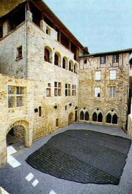 Het Place des Ecritures, Figeac, Frankrijk Een Egyptisch tablet in het Louvre in Parijs