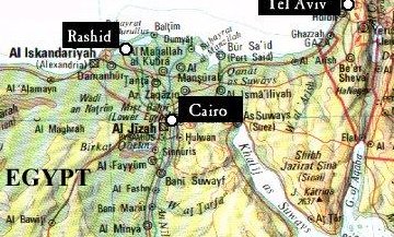 gevonden bij Rosette, vlakbij Rashid. Dit ligt ongeveer 200 km ten noorden van